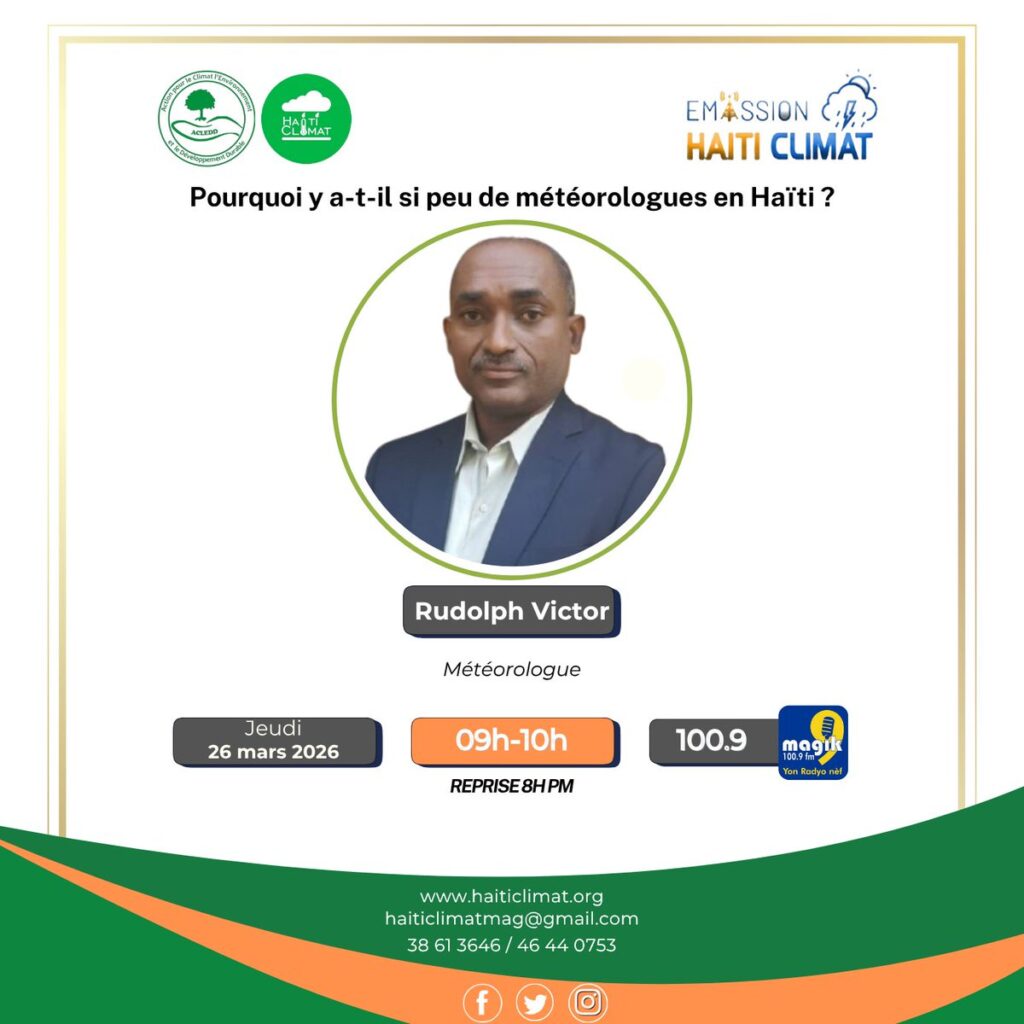 Dans un pays régulièrement confronté aux cyclones, aux fortes pluies et aux inondations, la météorologie joue un rôle crucial dans la prévention des risques et la protection des populations. Lors de l’émission Haïti Climat du 26 mars 2026, le météorologue Rudolph Victor a expliqué l’importance de cette discipline scientifique en Haïti, tout en soulignant les défis liés au manque de formation et d’investissements dans ce domaine.