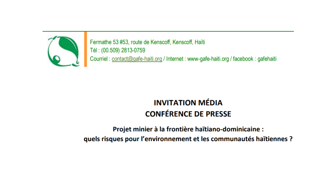 Le Groupe d’action francophone pour l’environnement (GAFE) a adressé une lettre ouverte au ministre de l’Environnement, Moïse Jean-Pierre, et au directeur général du Bureau des mines et de l’Énergie, Claude Prépretit, pour attirer leur attention sur les risques environnementaux et sociaux liés au projet d’exploitation d’or par la compagnie canadienne Unigold dans la province de Dajabòn, en République dominicaine.