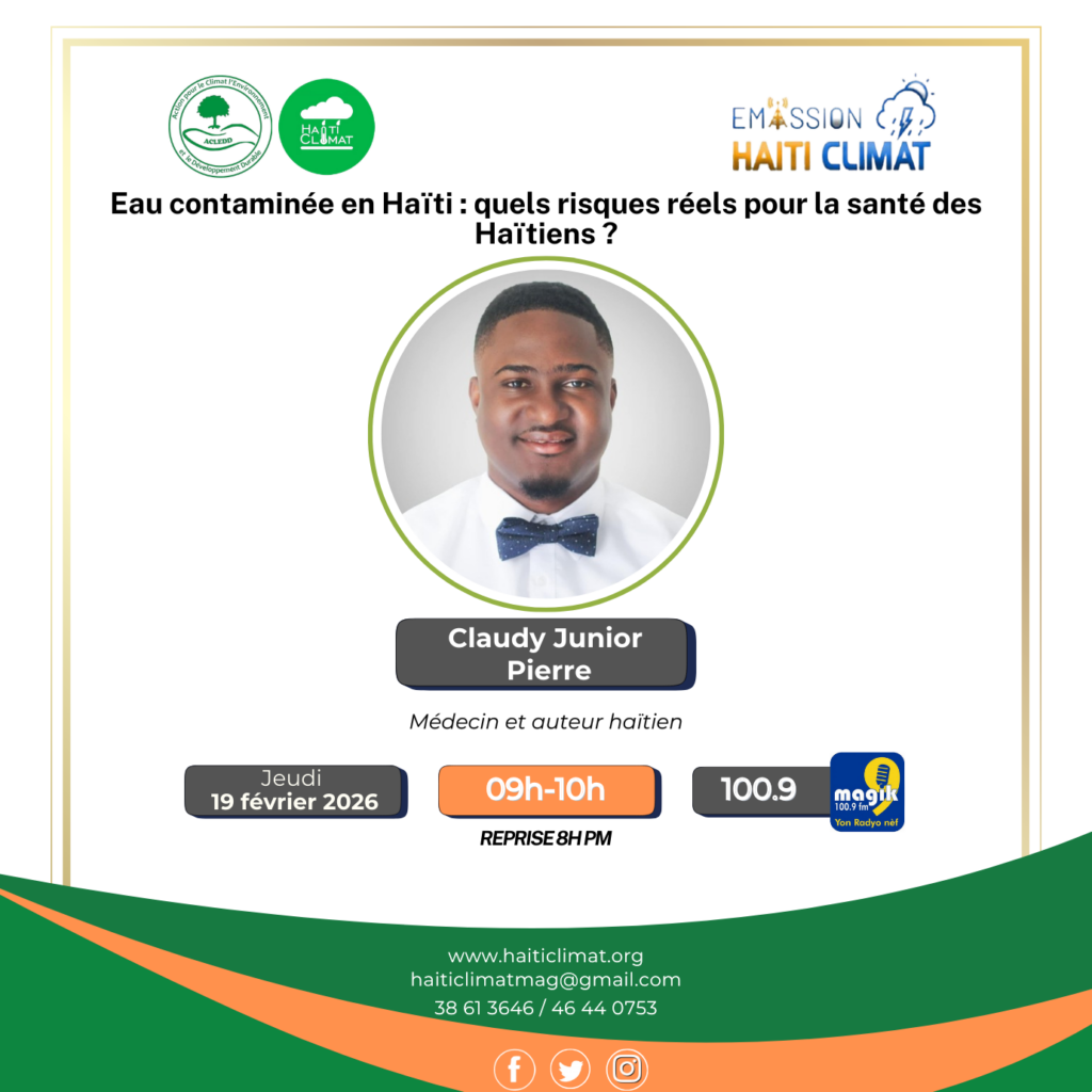 « Ce qui ne tue pas rend plus fort », dit un adage populaire. Mais dans le domaine médical, cette logique ne s’applique pas toujours. L’exposition répétée à des facteurs de risque, même lorsqu’elle ne provoque pas de symptômes immédiats, peut entraîner des conséquences graves à moyen et long terme. C’est dans ce contexte que l’émission Haiti Climat, diffusée le 18 février 2026, a reçu le Dr Claudy Junior Pierre, qui a tiré la sonnette d’alarme sur les risques liés à la consommation continue d’eau contaminée.