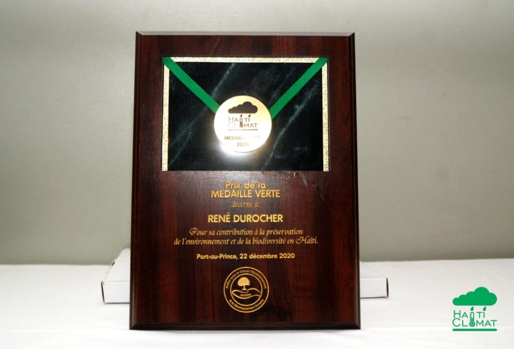 Auteur, consultant et militant engagé pour la conservation de la nature, René Durocher poursuit sa mission de sensibilisation du grand public à l’importance de la protection de l’environnement. Il fit partie des 5 personnalités et institutions lauréates du « Prix de la médaille verte » décerné par ACLEDD (Action pour le Climat l’Environnement et le Développement Durable) le 22 décembre 2020 pour l’ensemble de son œuvre lors du « Gala de l’environnement et du climat ».